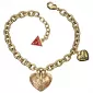 Tento úžasný náramek vyrobený z pozlaceného bižuterního kovu v lesklé povrchové úpravě Vás oslní. Náramek je zdobený dvěma přívěsky ve tvaru srdce. Větší srdce je z krystalu a menší srdce s nápisem Guess je stejného materiálu jako náramek. Konec náramku je zdobený typickým trojúhelníkem s logem Guess. Náramek má zapínání na klasickou karabinku.