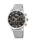Dámské hodinky mají kulaté pouzdro z nerezové oceli o průměru přibližně 37 mm a tloušťce kolem 10 mm. Ciferník je černý s perleťovým efektem a zdobený kamínky Swarovski na pozici indexů. Mají analogový quartzový strojek a nabízí funkce jako chronograf, datumové okénko a 12/24 hodinové zobrazení. Náramek je milánský z nerezové oceli. Vodotěsnost je 50 ATM, takže hodinky vydrží déšť, sprchu či krátké plavání. Nejsou určeny k potápění.