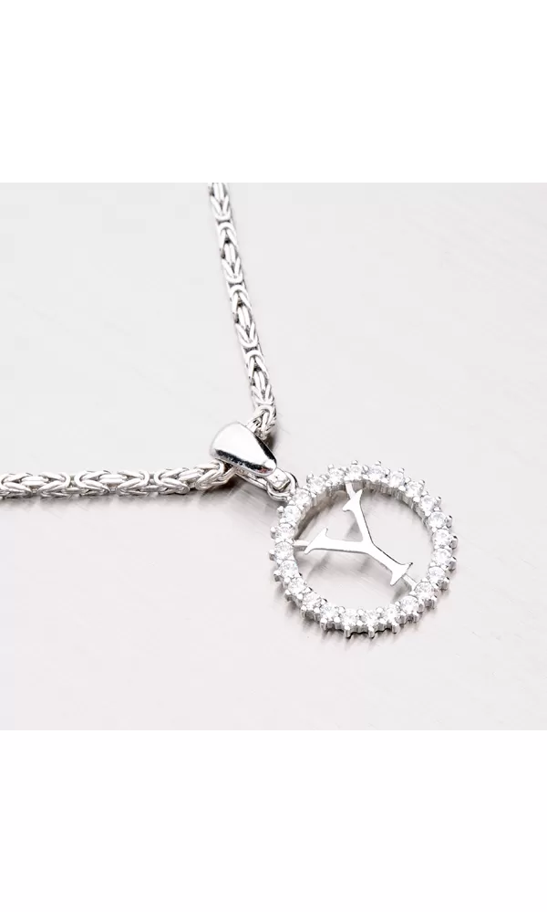Přívěsek ve tvaru písmenka Y je vyroben z rhodiovaného stříbra ryzosti 925/1000. Přívěsek je vyroben v lesklé povrchové úpravě a je osazen třpytivými zirkony. K přívěsku je vhodné použít řetízek o průměru 2,75 mm.
