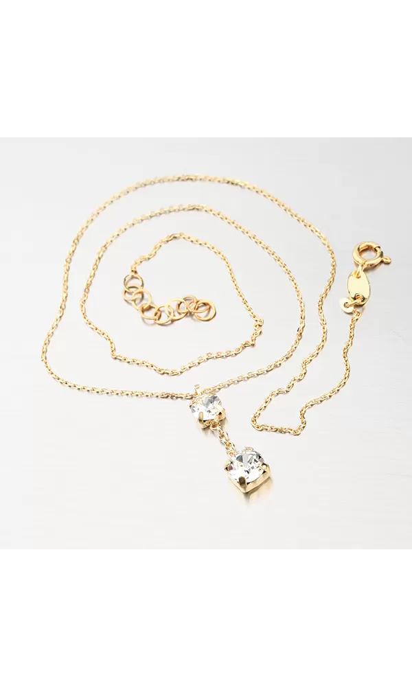 Krásný náhrdelník s řetízkem typu Anker a k tomu přívěsek osazený krystaly. Přívěsek tvoří dva krystaly pod sebou, kdy nahoře je jemnější a pod ním se nachází výraznější krystal, oba mají usazení do čtvercového tvaru. Řetízek je navíc zdobený facetami, které jsou zhotoveny diamantovým nástrojem. Ten dodává vzniklým facetám maximální lesk, díky kterému dokonale odráží světlo a mají krásnou brilanci ze všech úhlů pohledu!