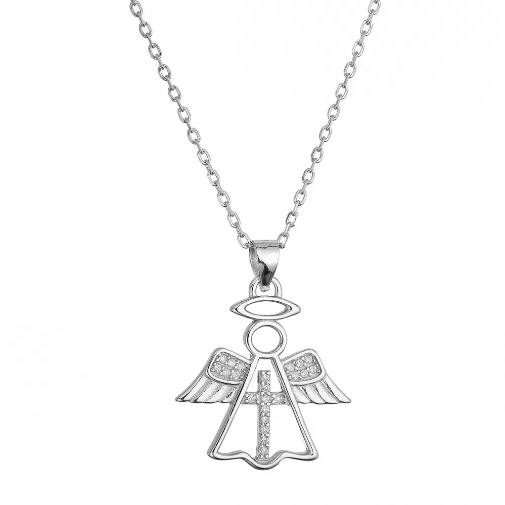 Precizně zpracovaný design anděla a křížku v ryzím stříbře kombinuje něhu andělské ochrany s hloubkou křesťanského symbolu.