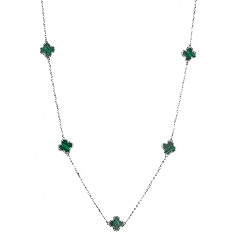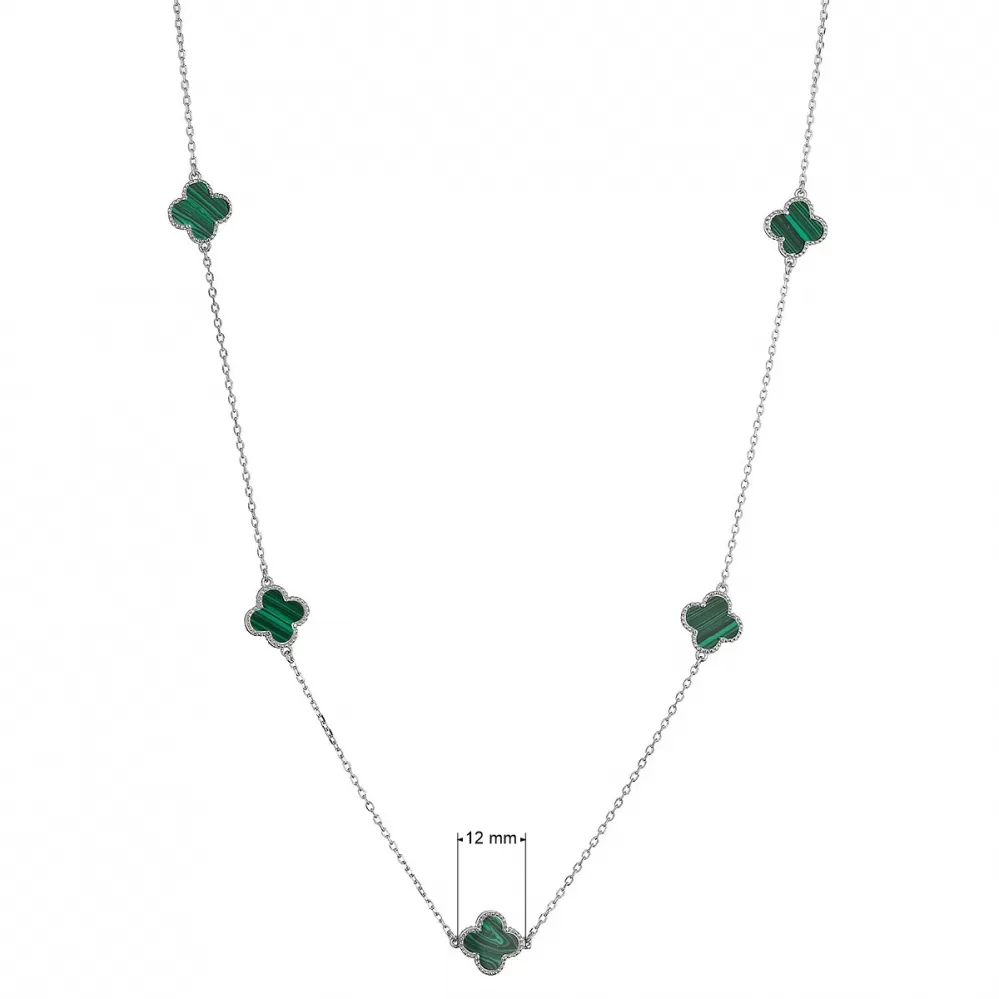 Stříbrný náhrdelník čtyřlístky malachit 12150.3