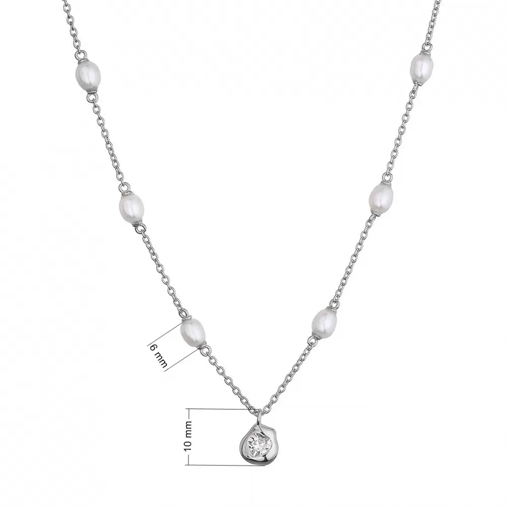 Stříbrný náhrdelník s říčními perlami a srdíčkem 22058.1