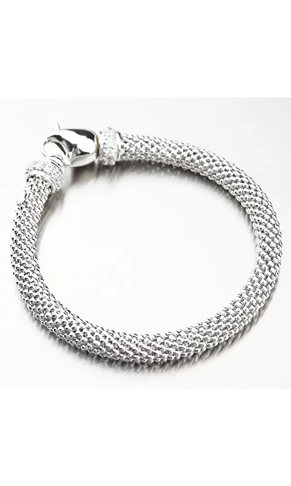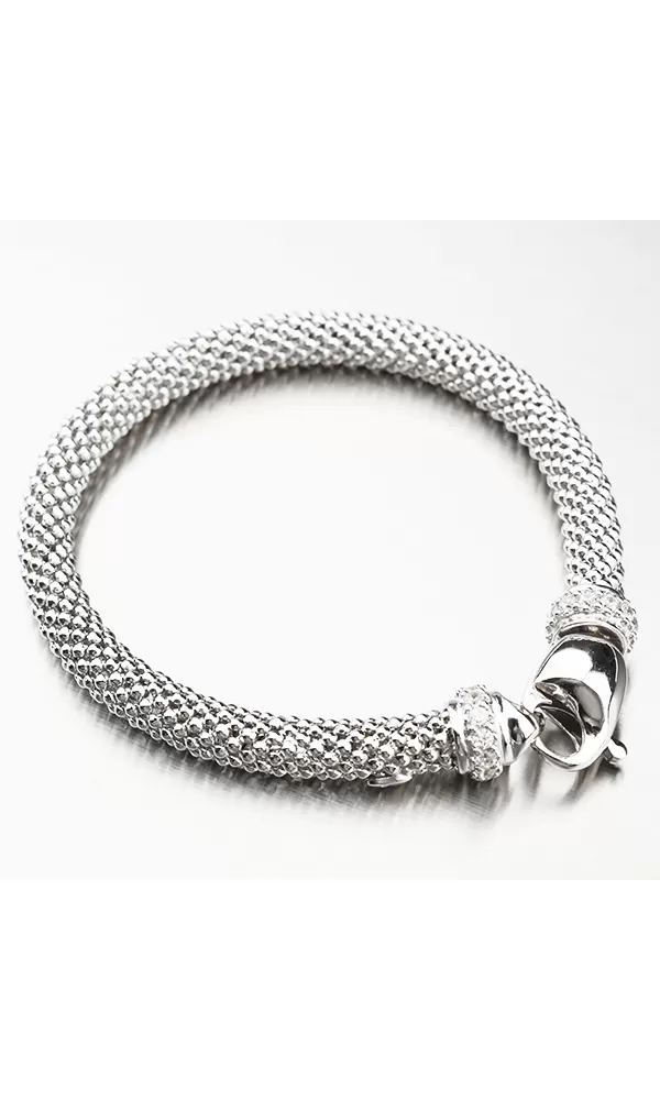 Ozdobte své zápěstí stříbrným náramkem o ryzosti 925/1000 v lesklé povrchové úpravě. Pro vysokou odolnost náramku je jeho povrch zušlechtěn rhodiováním. Rhodium je ušlechtilý drahý kov ze skupiny platinových kovů. Rhodiováním stříbrných šperků galvanickým nanášením tohoto drahého kovu se stává povrch šperku tvrdší, stálejší a odolnější vůči vnějším vlivům jako je mechanický otěr, poškrábání, nabíhání stříbra, lidský pot, kosmetické přípravky a další. Rhodium je antialergické.