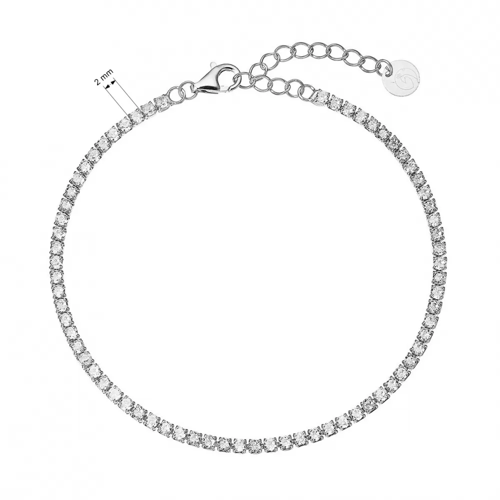 Elegantní tenisový náramek ze stříbra, osazený řadou precizně broušených zirkonů, které krásně odrážejí světlo při každém pohybu. Jeho jemný, ale výrazný design z něj dělá nadčasový doplněk pro každou příležitost – od běžného nošení až po slavnostní večery. Díky nastavitelné délce perfektně padne na každé zápěstí. Třpytivé zirkony o velikosti 2 mm jsou vsazené do stříbra ryzosti 925/1000.