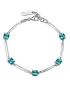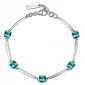Velmi slušivý náramek je vyroben z rhodiovaného stříbra ryzosti 925/1000. Rhodium je ušlechtilý drahý kov ze skupiny platinových kovů. Rhodiováním stříbrných šperků galvanickým nanášením tohoto drahého kovu se stává povrch šperku tvrdší, stálejší a odolnější vůči vnějším vlivům jako je mechanický otěr, poškrábání, nabíhání stříbra, lidský pot, kosmetické přípravky a další. Rhodium je antialergické. Náramek je zdoben hranatými kubickými zirkony v modré barvě. Délka anáramku je 16 cm a zapíná se na spolehlivou karabinu.