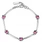 Velmi slušivý náramek je vyroben z rhodiovaného stříbra ryzosti 925/1000. Rhodium je ušlechtilý drahý kov ze skupiny platinových kovů. Rhodiováním stříbrných šperků galvanickým nanášením tohoto drahého kovu se stává povrch šperku tvrdší, stálejší a odolnější vůči vnějším vlivům jako je mechanický otěr, poškrábání, nabíhání stříbra, lidský pot, kosmetické přípravky a další. Rhodium je antialergické. Náramek je zdoben hranatými kubickými zirkony v růžové barvě. Délka anáramku je 16 cm a zapíná se na spolehlivou karabinu.