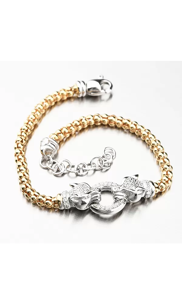 Dámský náramek je vyroben ze stříbra o ryzosti 925/1000 v lesklé povrchové úpravě. Náramek je zlacen technikou PVD v barvě žlutého zlata. Předností zlacení technologií PVD je vysoká tvrdost a odolnost proti otěru! Jedná se o silnou vrstvu, která proniká do původního materiálu. Zlacení technologií PVD se dá srovnat s přibližně 12 mikrony galvanického zlacení, což je vysoká hodnota, která při běžném nošení vydrží až několik let.