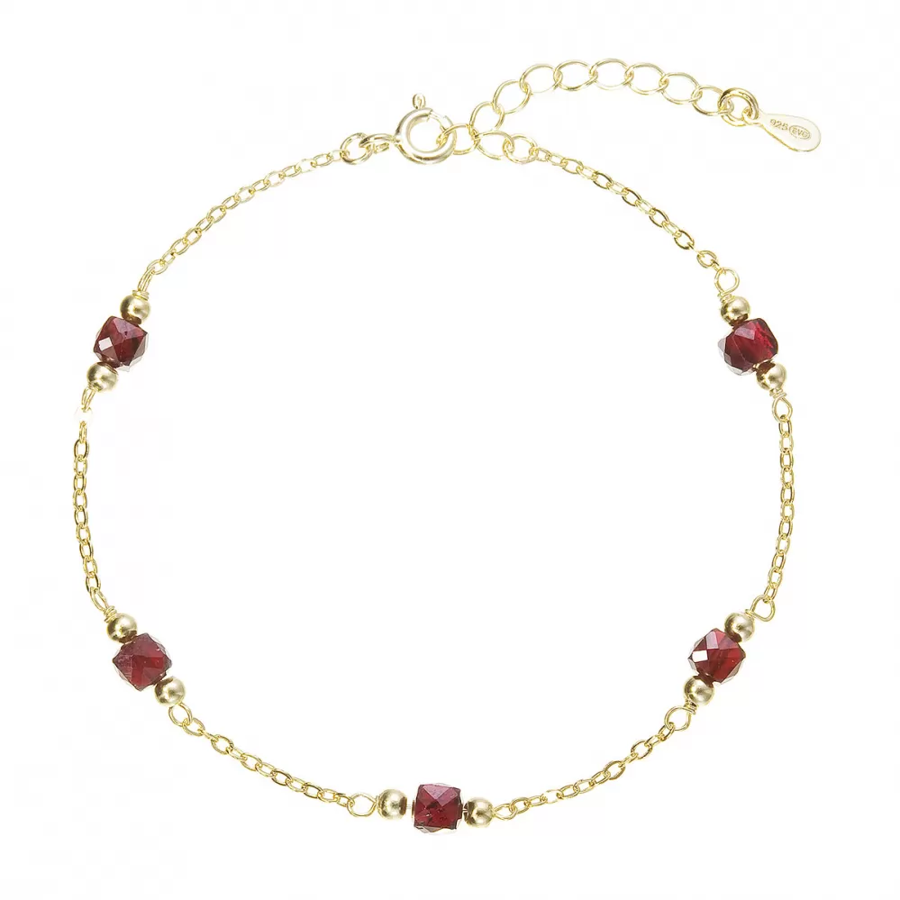 Jemný pozlacený náramek s drobnými fazetovanými granáty v nádherné sytě červené barvě.