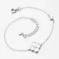 Slušivý stříbrný náramek pro ženy nebo dívky, které mají rády jemné a elegantní šperky. Náramek tvoří řetízek typu anker a zdobí jej ozdoba ve tvaru čtyřlístku, kterou dekoruje půvabná perleť a zirkon vsazený doprostřed čtyřlístku. Další výrazný zirkon najdete kousek od karabinky. Zirkony jsou briliantového brusu. Tento brus propůjčuje zirkonům brilanci pravých diamantů, který podpoří i konstrukce náramku.