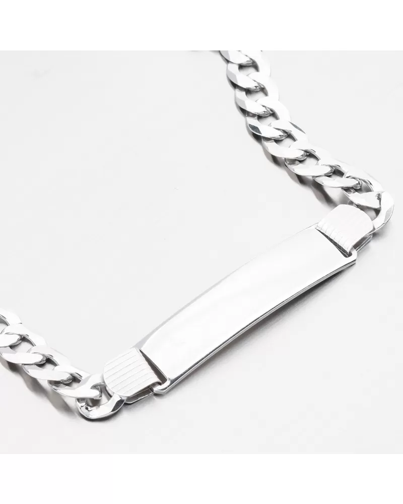 Pánský náramek je složen z řetízku Pancer a destičky, která je umístěna uprostřed. Řetízky se vzorem Pancer jsou tvořeny plochými očky, která do sebe těsně zapadají, a tím vytvářejí rovný a hladký povrch. Díky tomu je tento typ řetízku nejen hodně odolný proti roztržení, ale také velmi příjemný na nošení. Destička je jemně prohlá pro maximální pohodlí při nošení. Destičku lze vyzdobit rytinou a tím vznikne originální dárek, který ocení každý muž. Na destičku je možno vyrýt vámi vybraný text jako je např. jméno nebo písmeno. Popis rytiny prosím uveďte v kolonce speciální požadavky. Stříbrný náramek zapnete masivní karabinou.