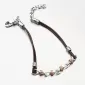 Moderní náramek tvořený z hnědé kůže a stříbrných a růžových dílků. Růžovou barvu zlata dodává technika zlacení PVD. Předností zlacení technologií PVD je vysoká tvrdost a odolnost proti otěru! Jedná se o silnou vrstvu, která proniká do původního materiálu. Zlacení technologií PVD se dá srovnat s přibližně 12 mikrony galvanického zlacení, což je vysoká hodnota, která při běžném nošení vydrží až 12 let.