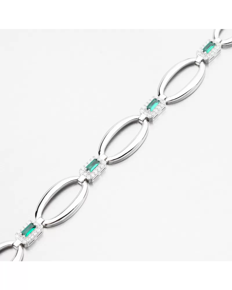 Stříbrný náramek se smaragdy a zirkony PKL-4043