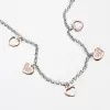 Romantický a něžný náramek s řetízkem hráškového typu, který je zdobený přívěsky ve tvaru srdíček. Dvě srdíčka jsou navíc osazena zářivými zirkony v briliatovém brusu, který dodává maximální třpyt. Navíc jsou všechna srdíčka v růžové barvě zlata, kterou dodává technika zlacení PVD. Předností zlacení technologií PVD je vysoká tvrdost a odolnost proti otěru! Jedná se o silnou vrstvu, která proniká do původního materiálu. Zlacení technologií PVD se dá srovnat s přibližně 12 mikrony galvanického zlacení, což je vysoká hodnota, která při běžném nošení vydrží až 12 let.