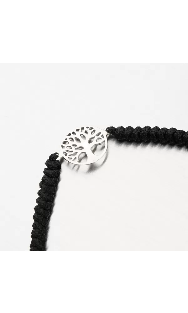 Velmi oblíbený typ provázkového náramku, který má výhodu ve své univerzální velikosti a také vhodnosti pro obě pohlaví. Náramek je tvořen z černého dvojitého provázku, který je ozdoben ve svém středu stříbrným stromem života a poté vedle něho na každé straně jdou provázky efektně zapletené.