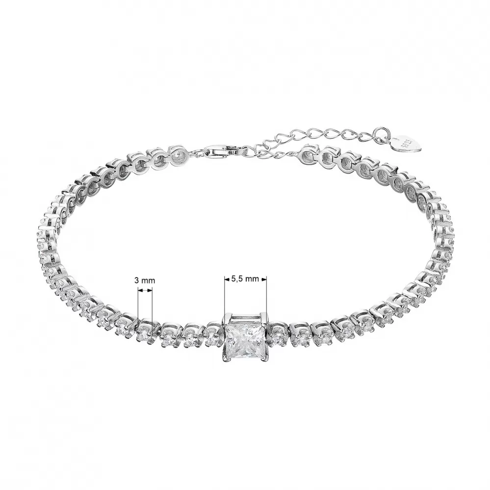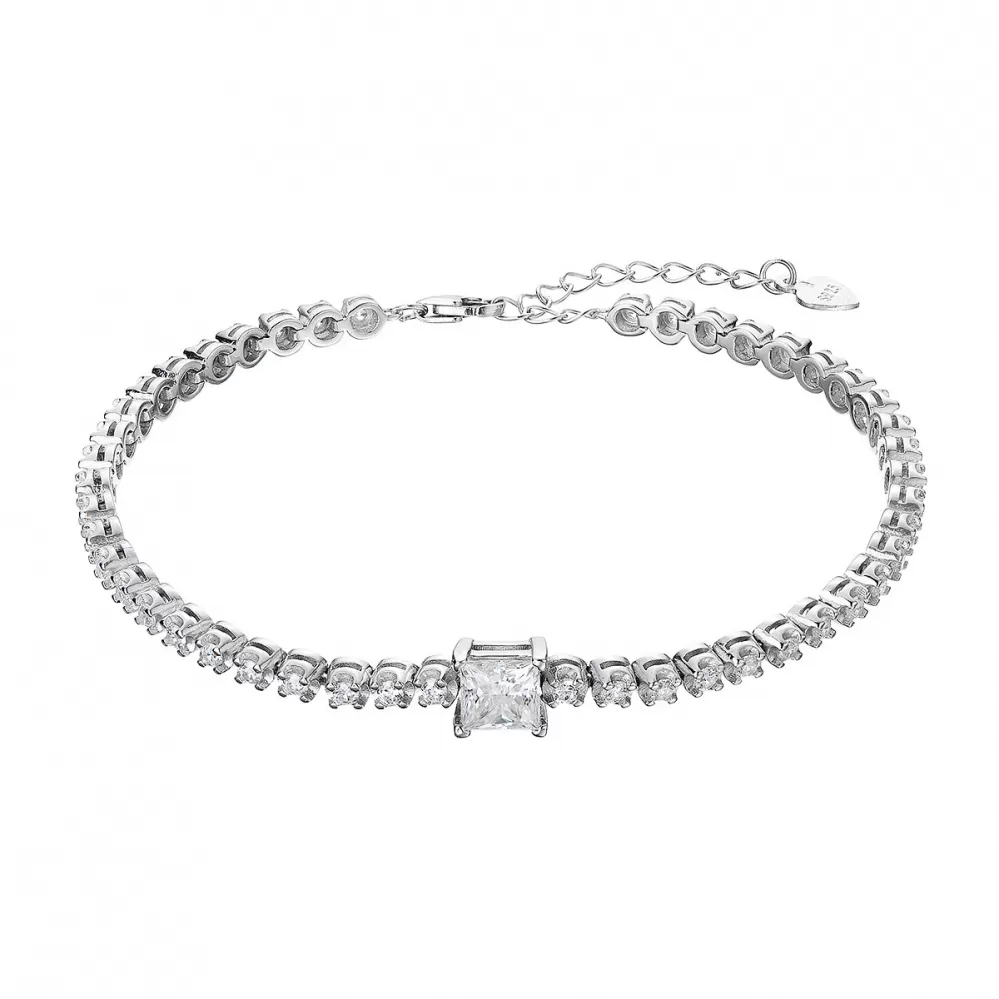Objevte dokonalou harmonii jemnosti a třpytu v tomto exkluzivním stříbrném náramku Chloe. Jemné kulaté moissanity lemující celý obvod náramku září jako hvězdy, zatímco uprostřed dominuje výrazný čtvercový moissanite kámen, který rozsvítí každý váš pohyb.