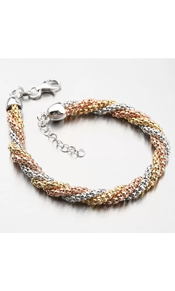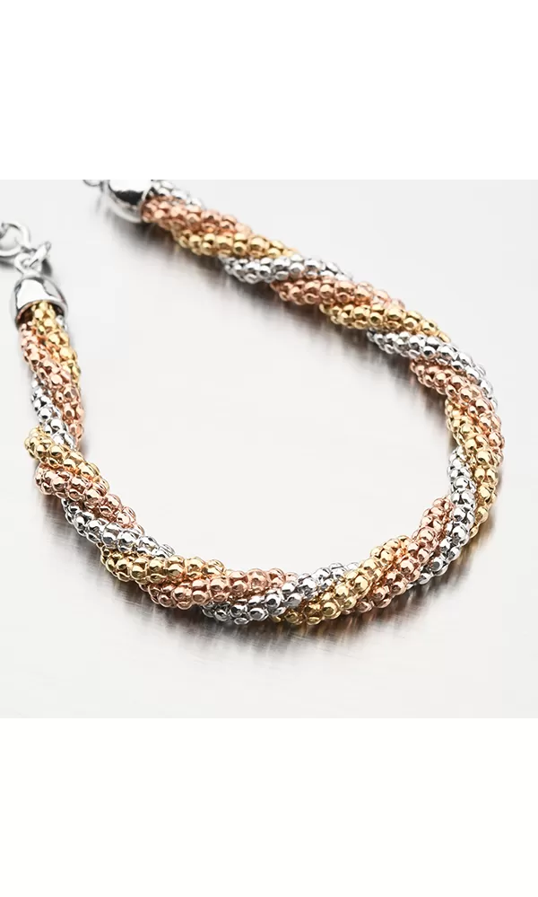 Elegantní náramek zaujme na první pohled svým dokonalým provedením, kde jsou jednotlivé části propletené. Žlutou a růžovou barvu zlata náramku dodává technika zlacení PVD. Předností zlacení technologií PVD je vysoká tvrdost a odolnost proti otěru! Jedná se o silnou vrstvu, která proniká do původního materiálu. Zlacení technologií PVD se dá srovnat s přibližně 12 mikrony galvanického zlacení, což je vysoká hodnota, která při běžném nošení vydrží až 12 let.