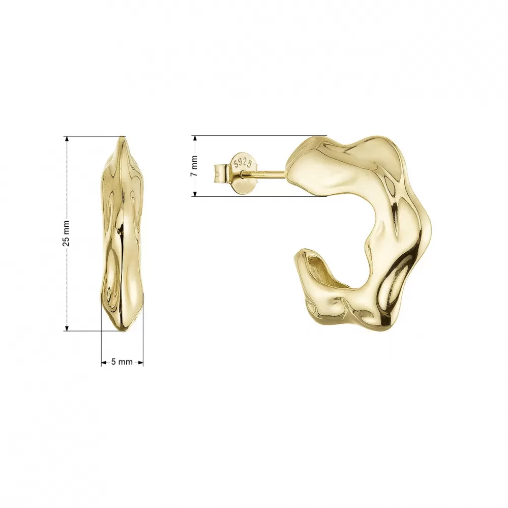 Výrazné náušnice ve tvaru otevřených, nedokončených kruhů zaujmou svým designem s nepravidelnými, plynulými vlnami, které evokují tekutý kov ztuhlý v pohybu. Každý ohyb je jedinečný - jako by jej vytvarovala sama příroda.