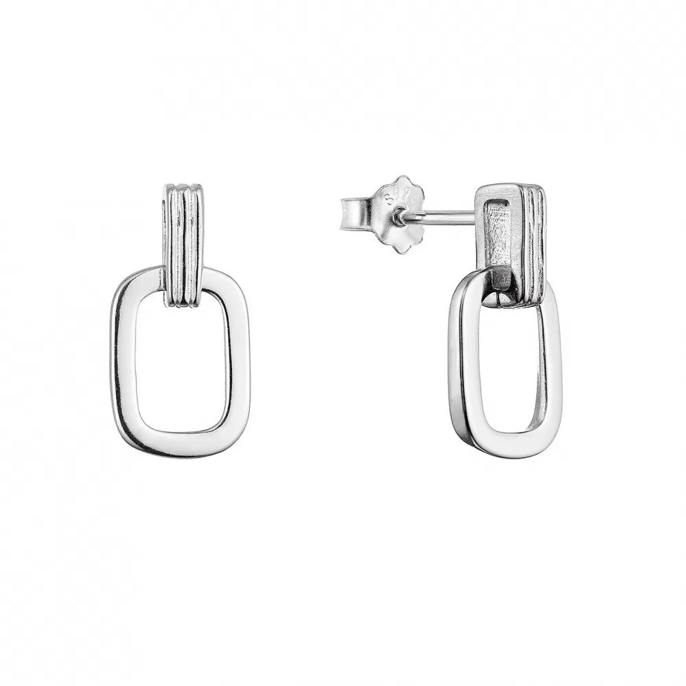 Dopřejte svému vzhledu zajímavý geometrický prvek s těmito půvabnými stříbrnými náušnicemi ve tvaru obdélníčků. Část, na které je obdélník připevněn, je ozdobena jemným rýhováním.