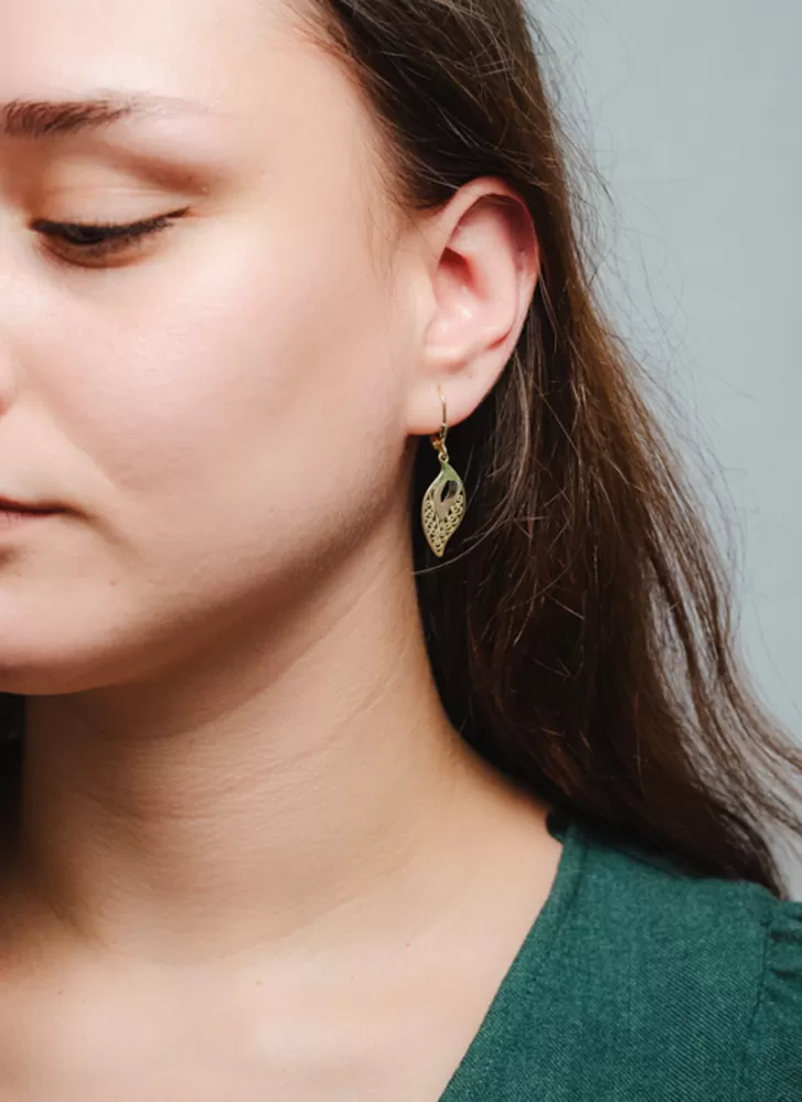 Nádherné stříbrné náušnice, které vynikají filigránovým vzorem na ozdobách visacích náušnic do tvaru lístečku. Tyto náušnice jsou vyrobeny za pomocí precizní filigránové techniky. Jedná se o starobylou techniku zdobení šperků, která spočívá v kroucení a pájení jemných drátků z drahých kovů.