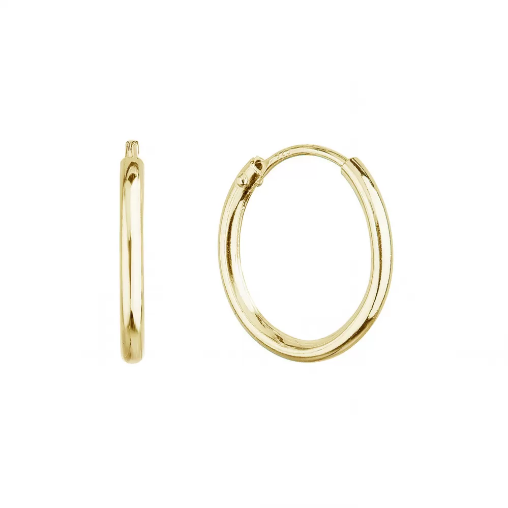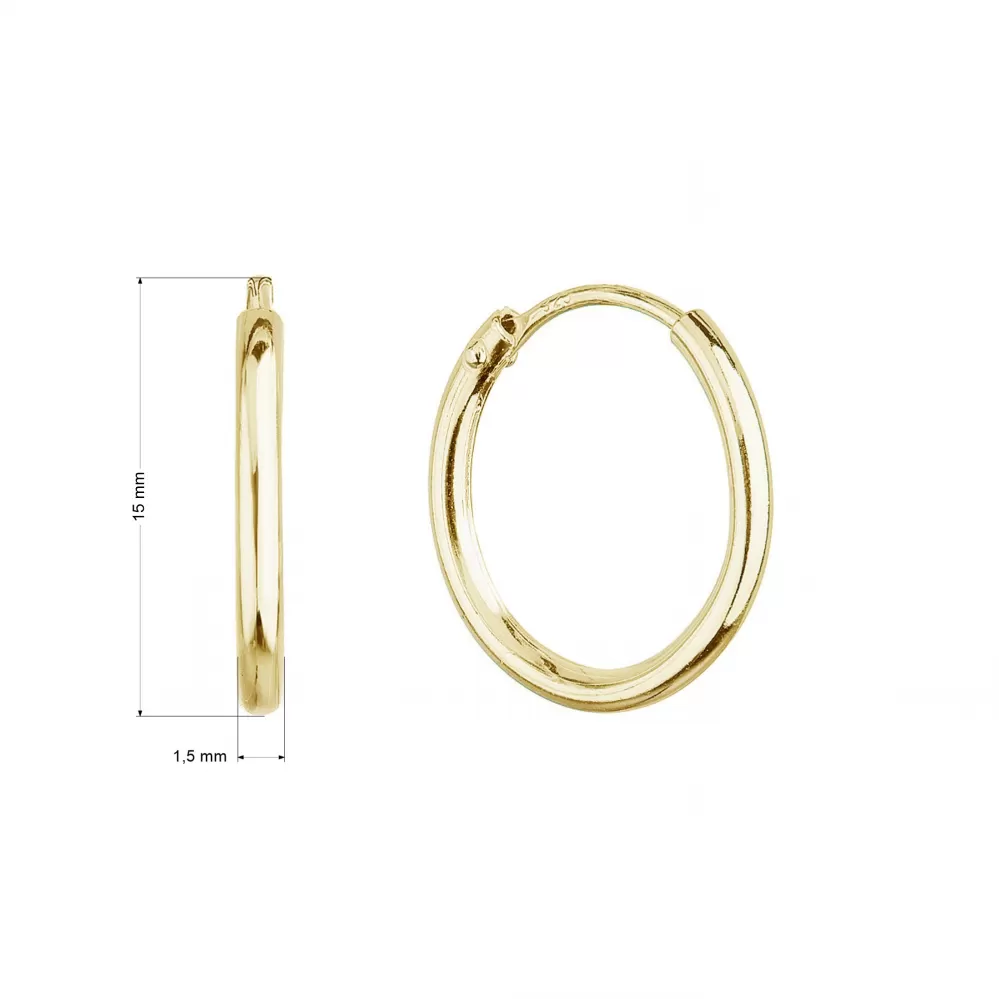 Pozlacené stříbrné náušnice typu kruhy 61001 jsou vyrobeny ze stříbra ryzosti 925/1000, jehož povrch je upraven zlatem. Náušnice mají průměr 15 mm a zapínání na kroužek.
