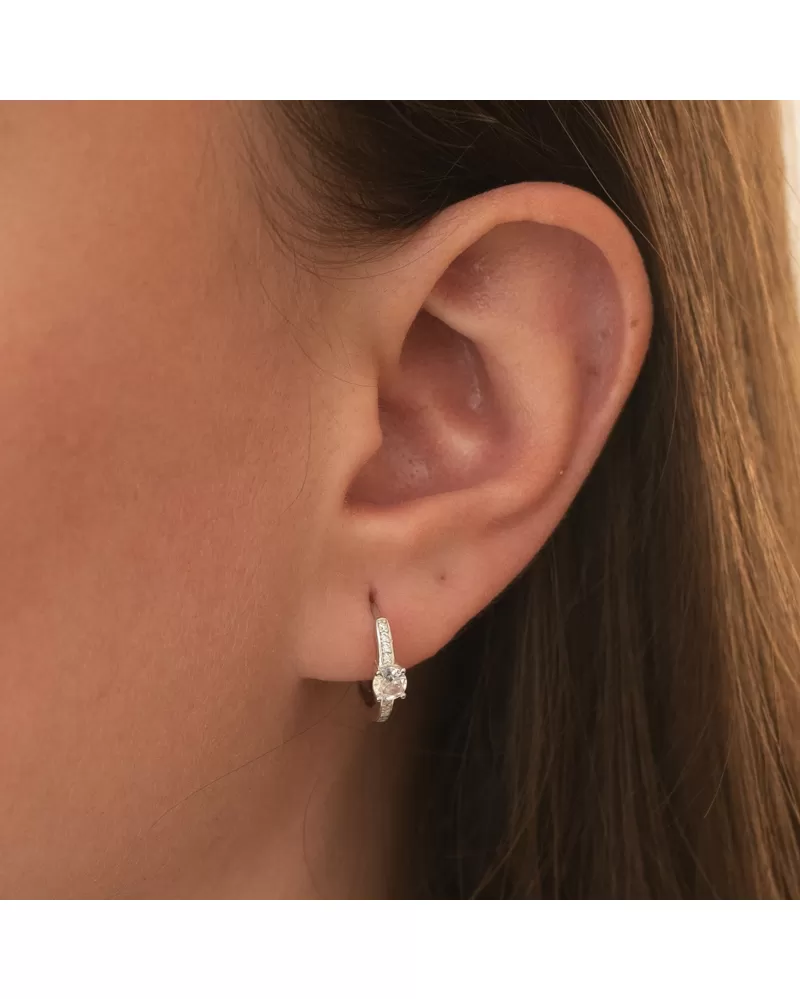 Velmi oblíbený typ náušnic hlavně kvůli své menší velikosti a tím zaručení pohodlnosti po celý den nošení. Kruhy jsou zdobeny v přední části jednou řadou zirkonů. Dále vás zaujme výrazný zirkon o velikosti 4 mm, které je usazen přibližně v polovině přední části. Zirkony skvěle můžete nakombinovat s dalšími oblíbenými šperky. Všechny zirkony jsou briliantového brusu, který zajišťuje maximální brilanci vybroušených facet, dokonale odráží světlo a neuvěřitelně září z každého úhlu pohledu.