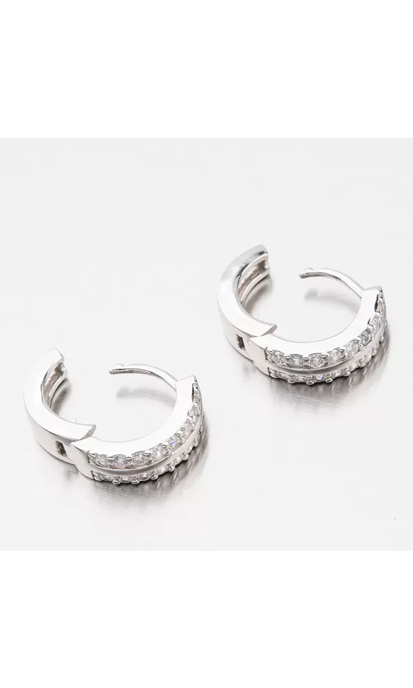 Velmi elegantní zářivé kruhy pro ženy co hledají zářivý šperk pro každý den. Tyto náušnice jsou zajímavé zirkony vsazeny ve dvou řadách, které jsou broušeny do briliantového brusu. Zadní strana náušnic je leštěná do vysokého lesku a pokud vás zirkony omrzí můžete náušnice nosit i zadní stranou dopředu.