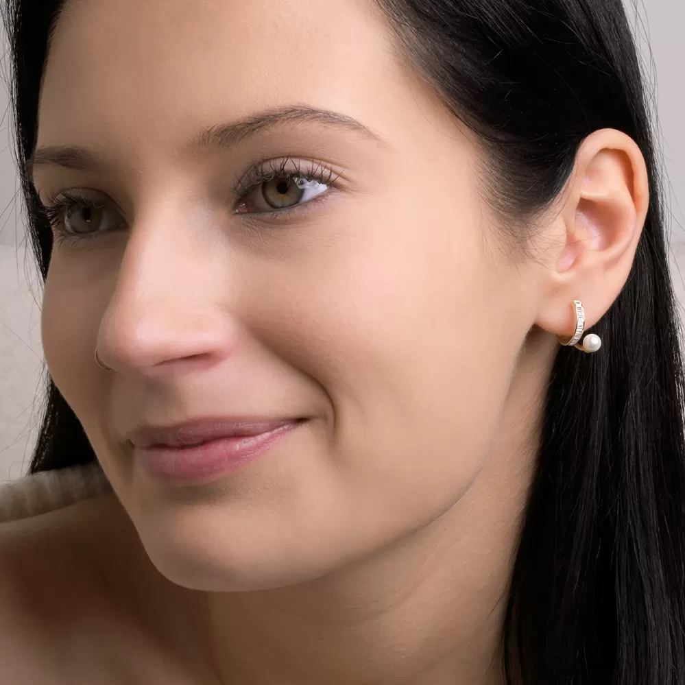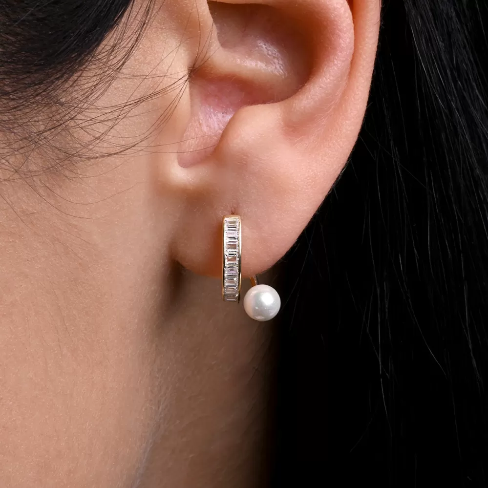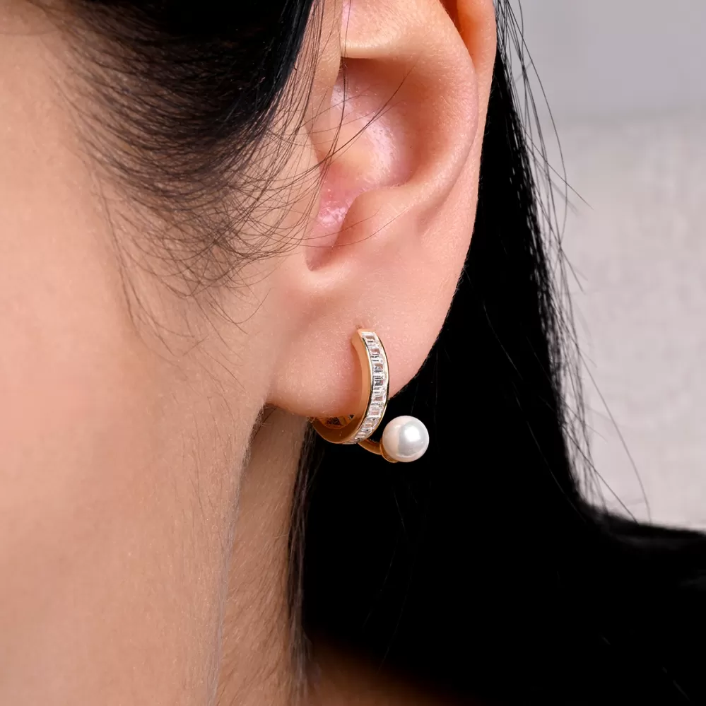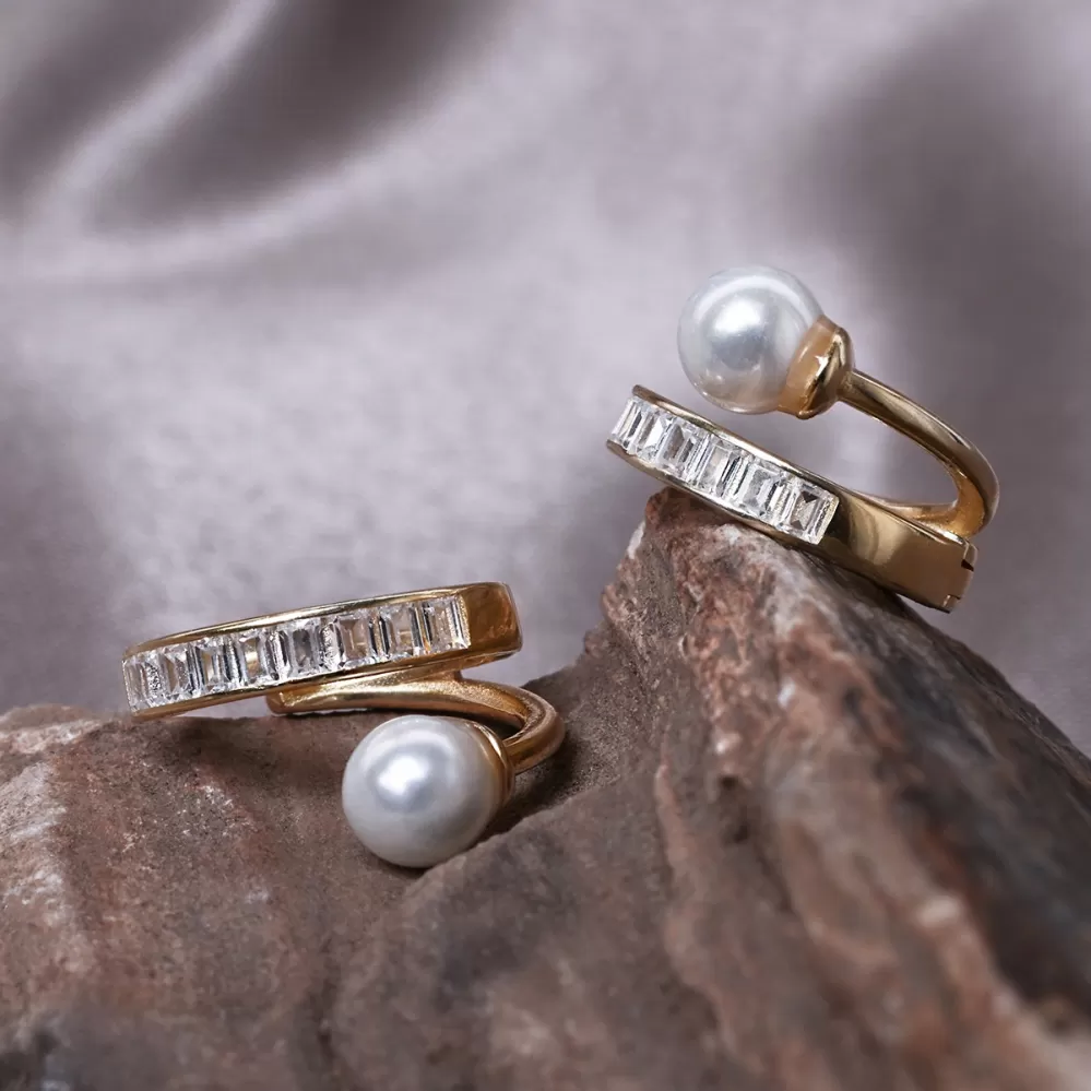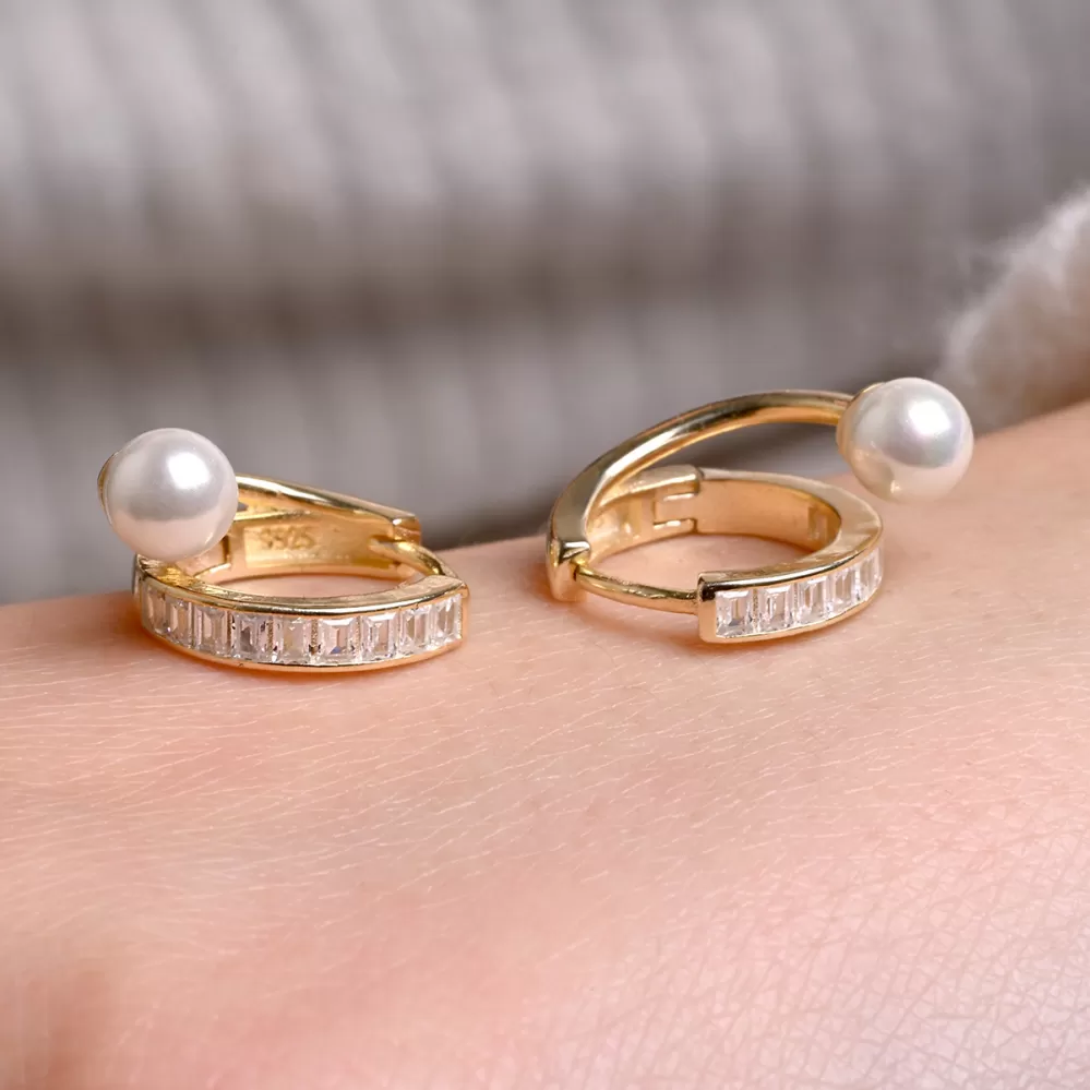Pozlacené kroužky s perličkou a zirkony 11808.1