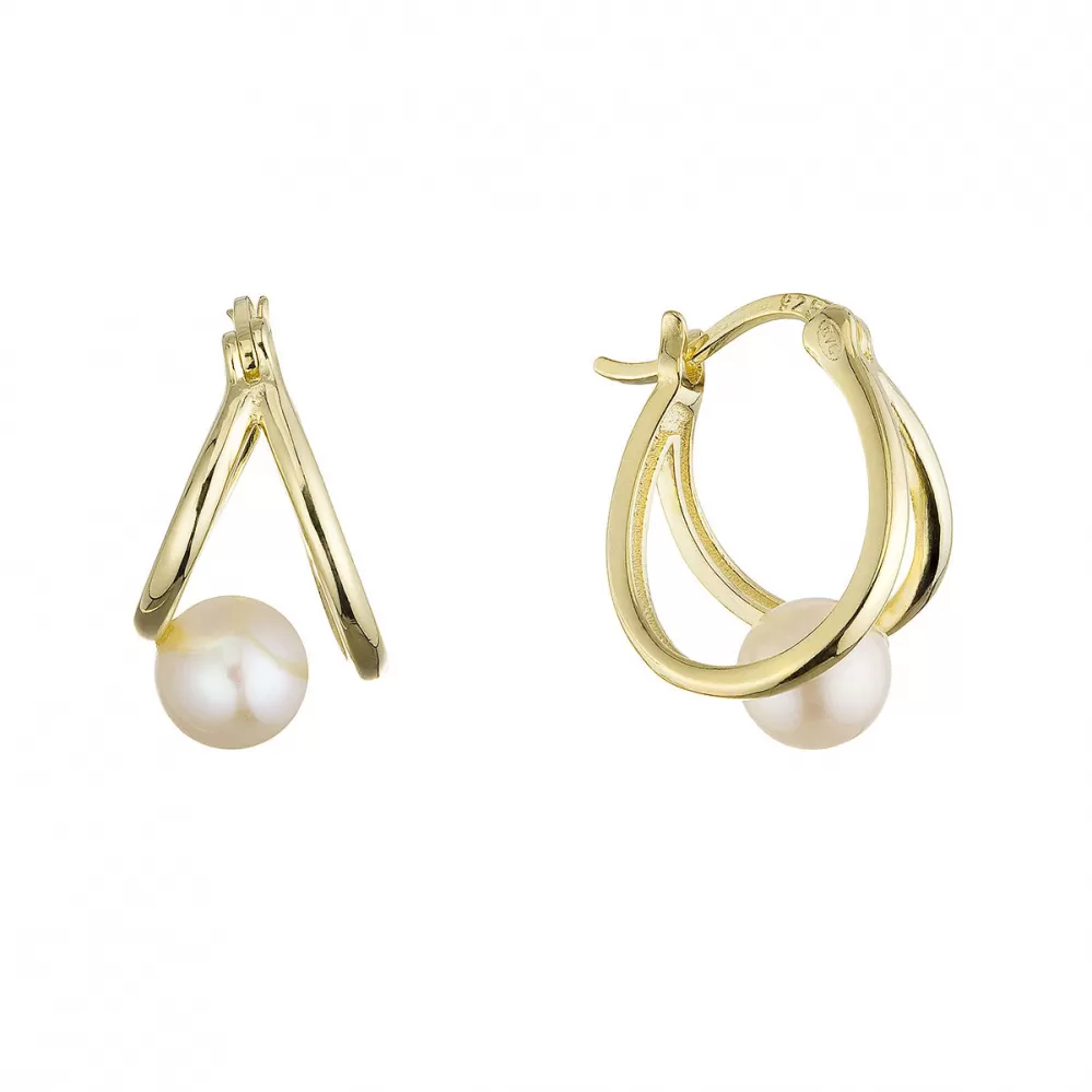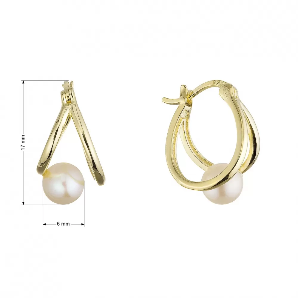 Pozlacené náušnice kruhy s bílou říční perlou 21130.1