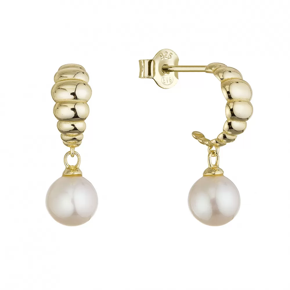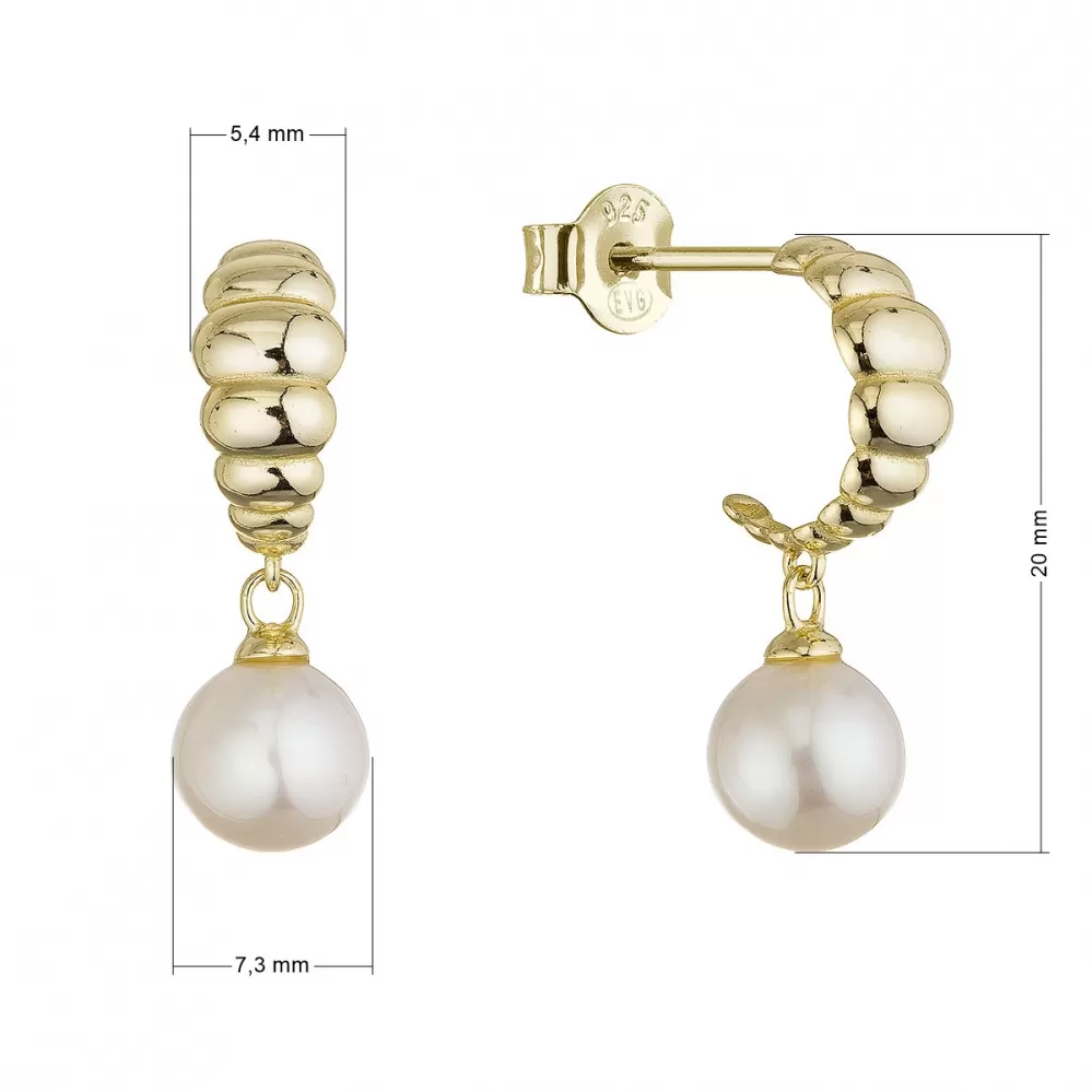 Pozlacené náušnice kruhy se zavěšenou říční perlou 21126.1