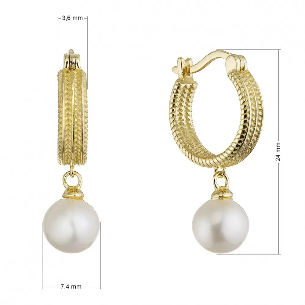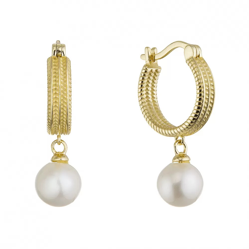 Pozlacené náušnice kruhy se zavěšenou říční perlou 21127.1
