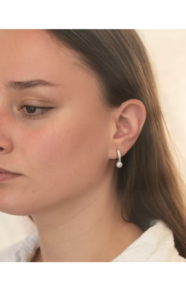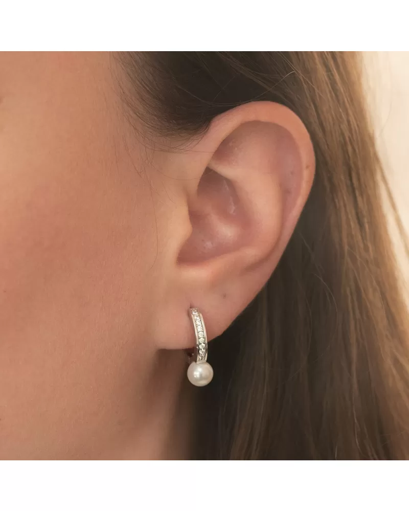 Stříbrné kruhy s perlou a se zirkony PKL-2238