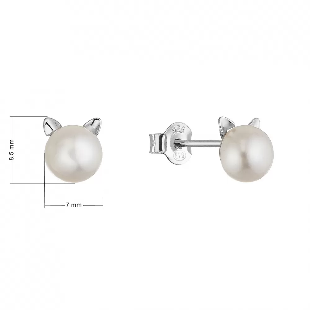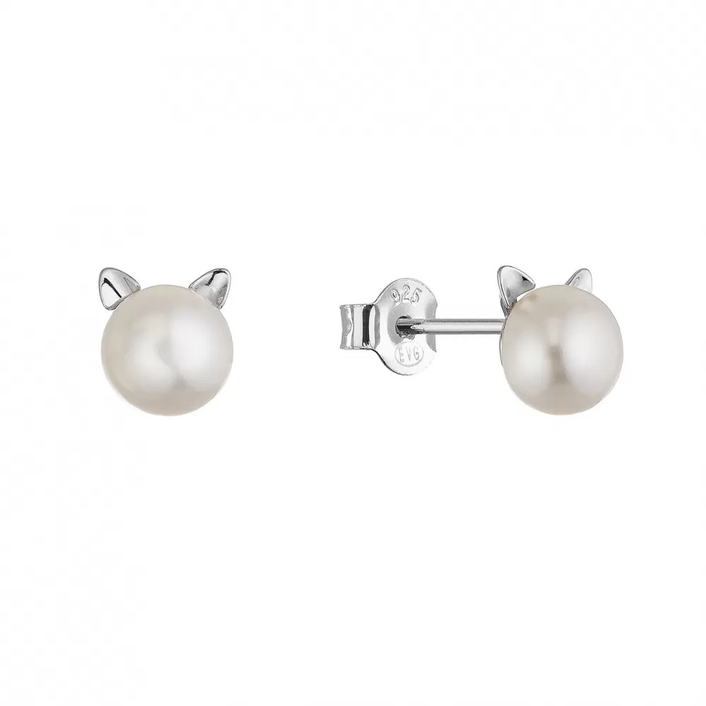 Stříbrné náušnice kočičky s říční perlou 21117.1