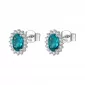 Zářivé náušnice jsou vyrobeny ze stříbra ryzosti 925/1000 v lesklé povrchové úpravě. Náušnice jsou zdobeny velkým modrým kubickým zirkonem a menšími čirými kubickými zirkony, které jsou vsazeny kolem dokola. Náušnice jsou pohodlné se zapínáním na puzety. Jejich tvar si oblíbíte. Dokonale padnou, schovají dírku, která někdy bývá problém. Náušnice jsou vhodné do společnosti i na běžné nošení.