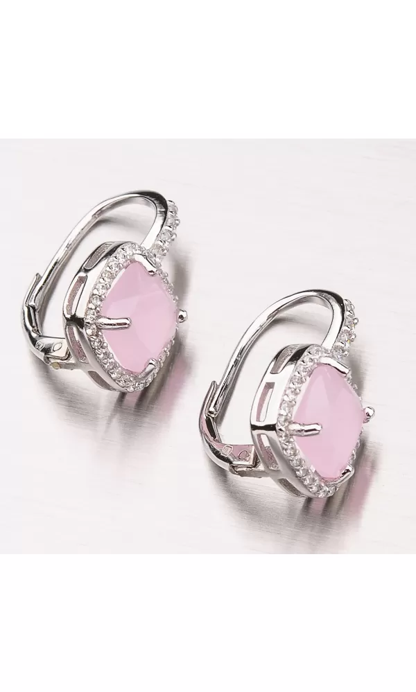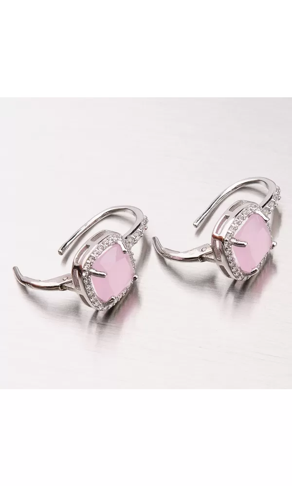 Propracované dámské náušnice zdobí krásný syntetický růženín a zirkony. Tyto náušnice se zapínají na klapku.
