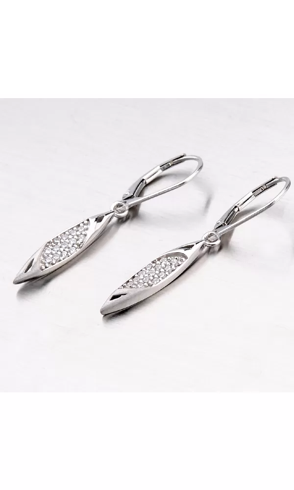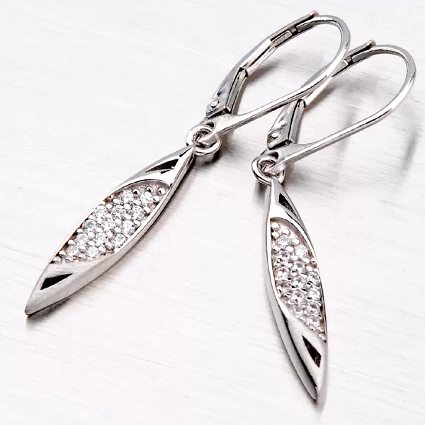 Propadněte kouzlu těmto elegantním náušnicím v jednoduchém tvaru, který sluší každé ženě. Náušnice jsou v kombinaci lesklé a matné povrchové úpravě a zdobeny zirkony. Na vrchní a spodní části ozdoby jsou průřezy, které dodávají náušnicím šmrnc. Náušnice se zapínají na klapku.