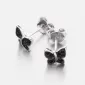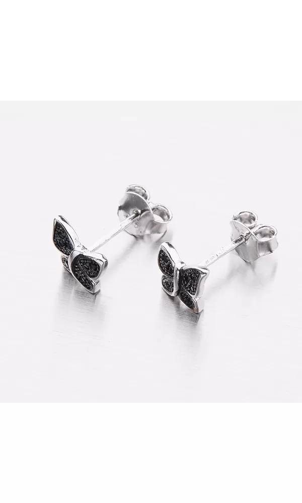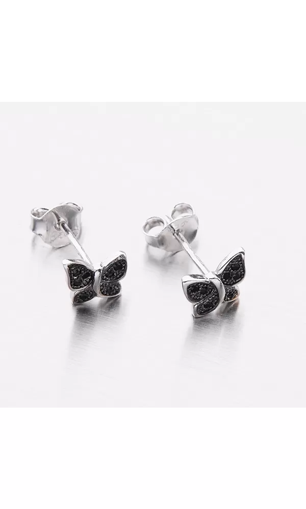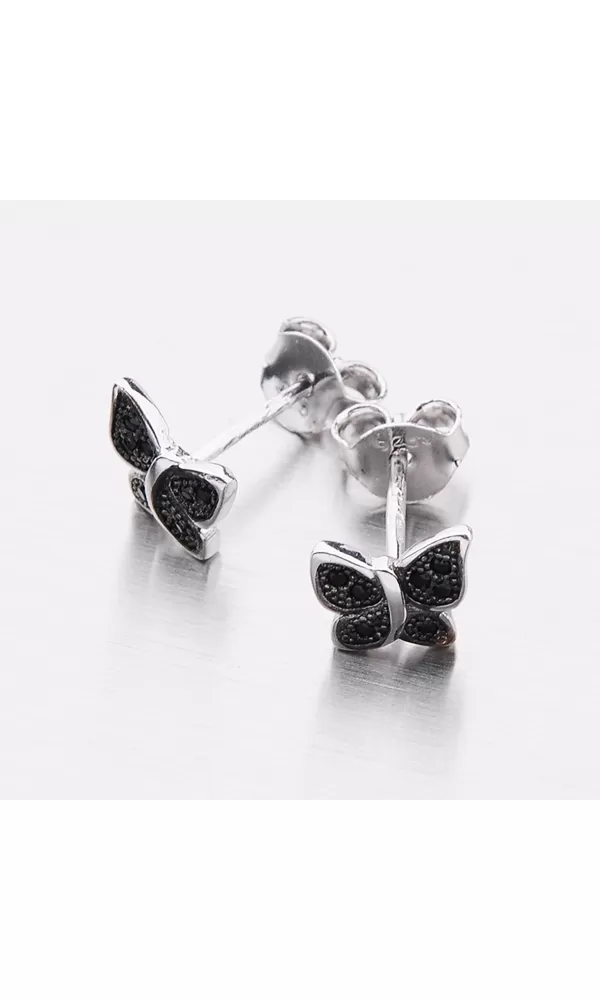 Náušnice jsou ve tvaru motýla, který je zdoben černými zirkony v briliantovém brusu. Zapínají se na puzety.