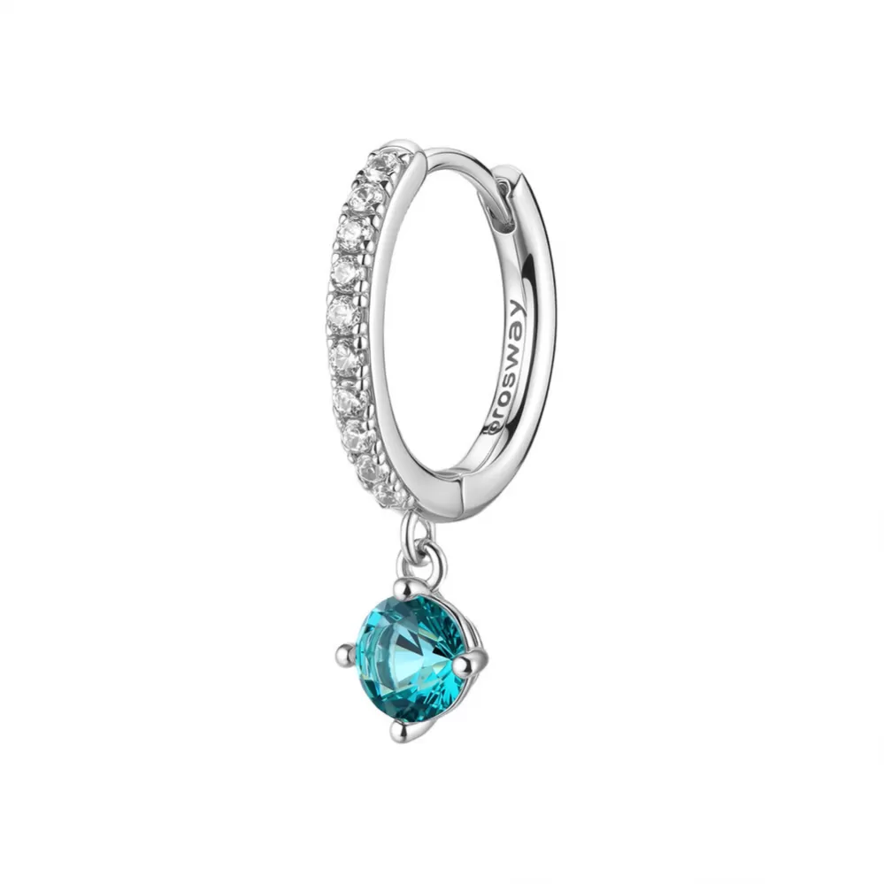 Single náušnice je vyrobena z rhodiovaného stříbra ryzosti 925/1000 v lesklé povrchové úpravě. Rhodium je ušlechtilý drahý kov ze skupiny platinových kovů. Rhodiováním stříbrných prstenů galvanickým nanášením tohoto drahého kovu se stává povrch šperku tvrdší, stálejší a odolnější vůči vnějším vlivům jako je mechanický otěr, poškrábání, nabíhání stříbra, lidský pot, kosmetické přípravky a další. Rhodium je antialergické. Visací náušnice zdobí zářivé zirkony precizně broušeny tak, aby se rozzářily každým Vaším pohybem.