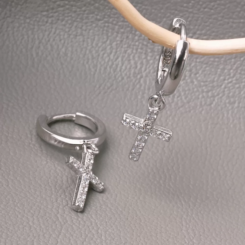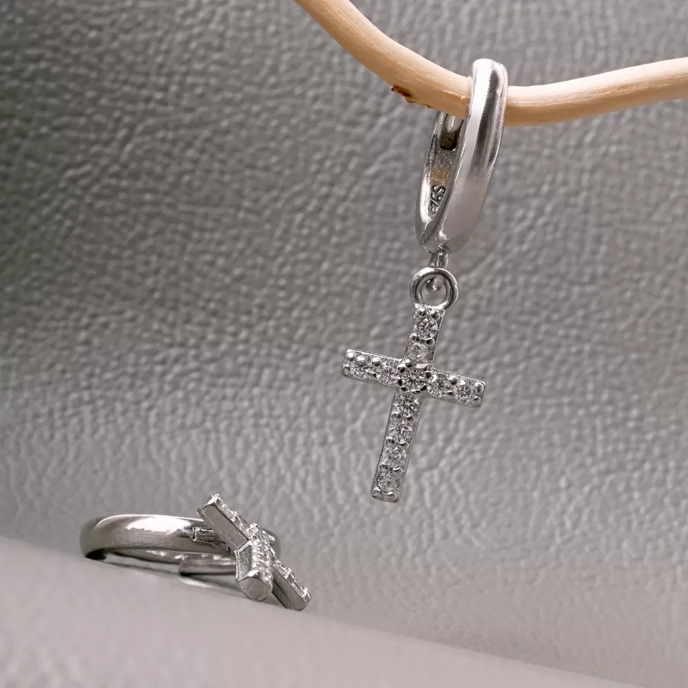 Stříbrné kroužky se zavěšeným křížkem 11778.1