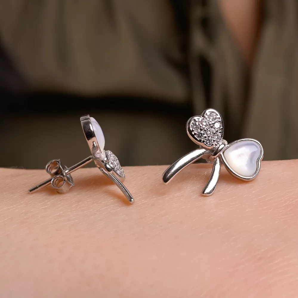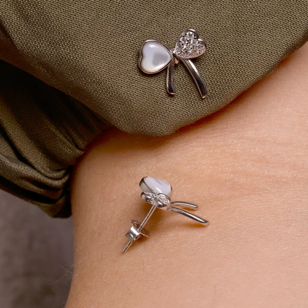 Stříbrné náušnice perleťové mašličky 11803.1