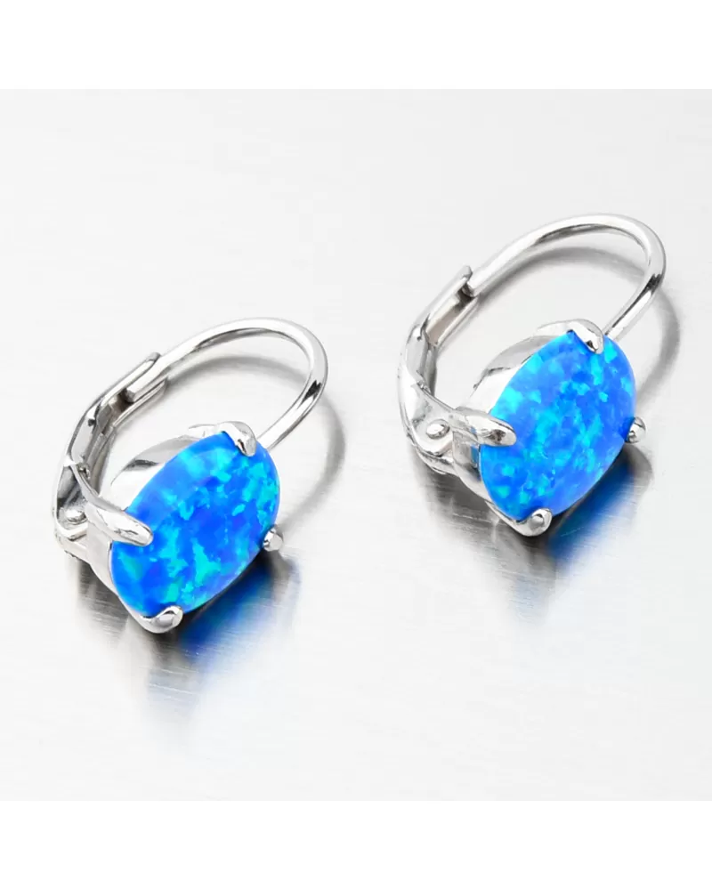 Šperky s opály zaujmou okolí na první pohled. Modrý opál je proslulý svými zářivými odlesky a krásnou barvou, která dokonale vyladí Váš outfit. Opál je syntetický a je oválného tvaru upevněný pomocí čtyř krapen. Náušnice jsou i přes svou velikost stále lehké a budou maximálně pohodlné i na celodenní nošení.