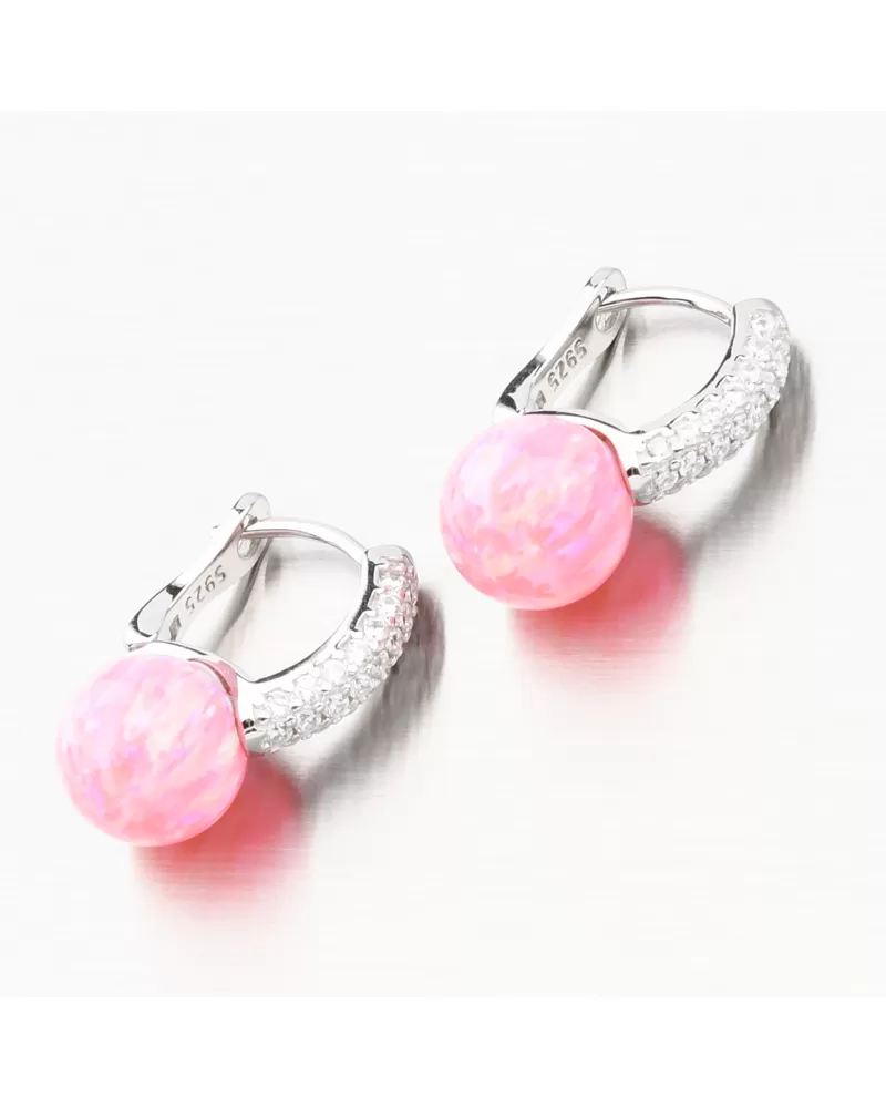 Výrazné stříbrné náušnice osazené syntetickým opálem v růžové barvě, který má nádherné duhové odlesky. Náušnice jsou navíc ozdobeny třpytivými zirkony na přední straně zapínání a to rovnou ve třech řadách. Zirkony jsou broušeny do briliantového brusu, který propůjčuje kamenům brilanci pravých diamantů. Design náušnic je elegantní a zazáříte s nimi při všech příležitostech.