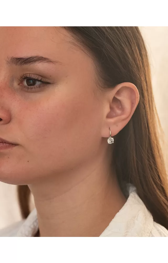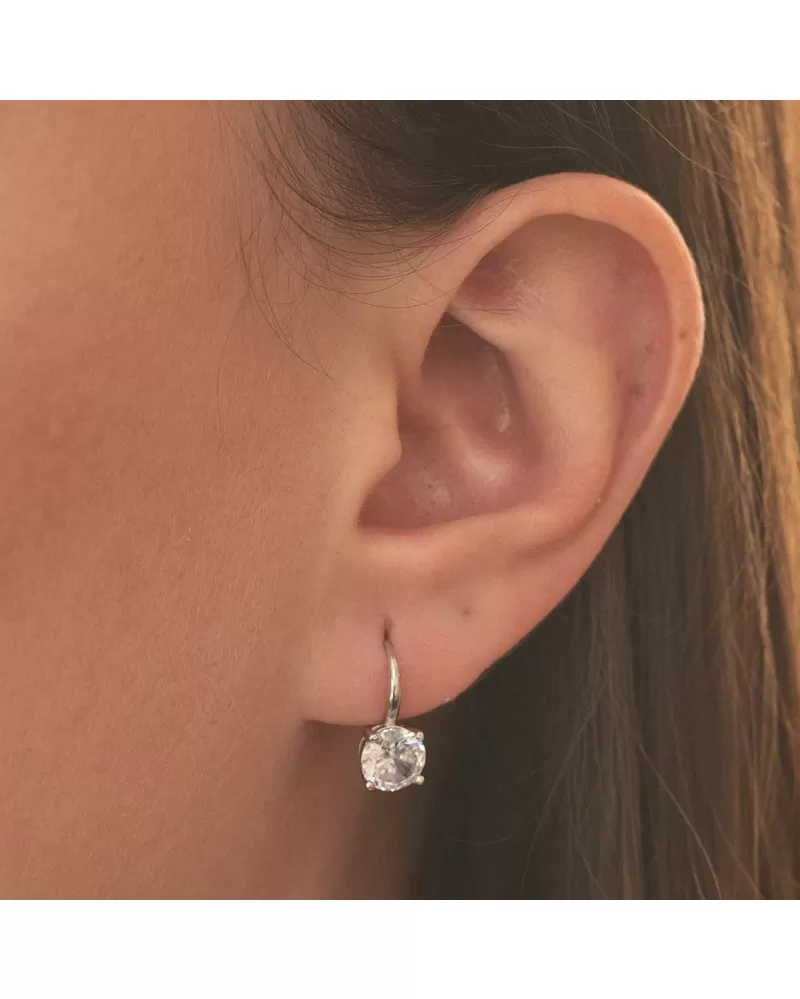 Jednoduché a přesto nádherné stříbrné náušnice budou perfektně doplňovat váš outfit. Náušnice zdobí jeden výrazný zirkon upevněný pomocí čtyř krapen. Zirkony jsou vybroušené briliantovým brusem, který dodává vzniklým facetám maximální brilanci! Náušnice budou ideálním dárkem, který zaručeně potěší každou ženu či dívku.