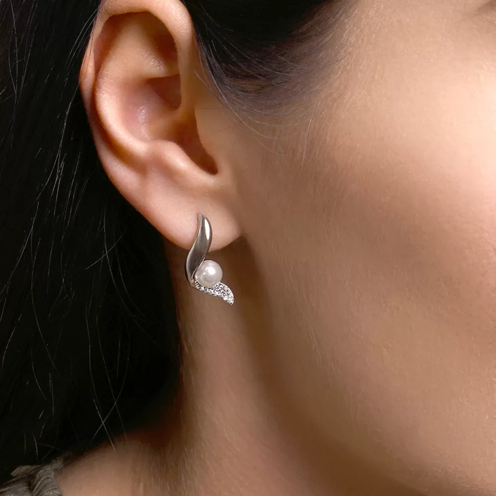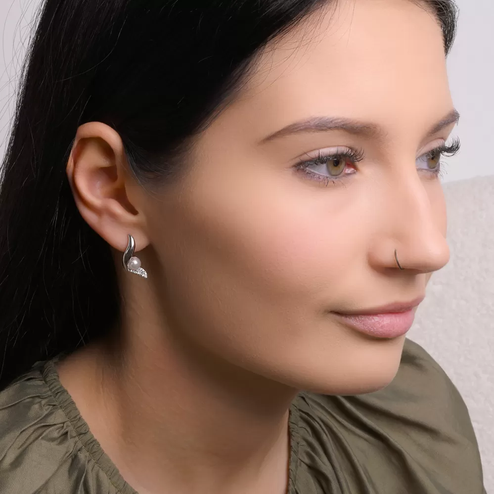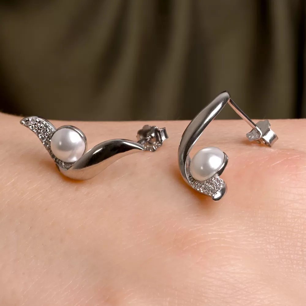 Stříbrné náušnice vlnky s perličkou 11806.1