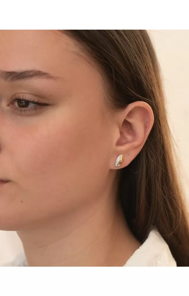Decentní stříbrné náušnice, které však zaujmou svým zdobením zářivými zirkony. Ozdoba náušnic je podlouhéhlo tvaru a v jedné polovině je osazeno drobnými zirkony briliantového brusu. Tento brus zajišťuje maximální brilanci vybroušených facet, dokonale odráží světlo a neuvěřitelně září z každého úhlu pohledu.