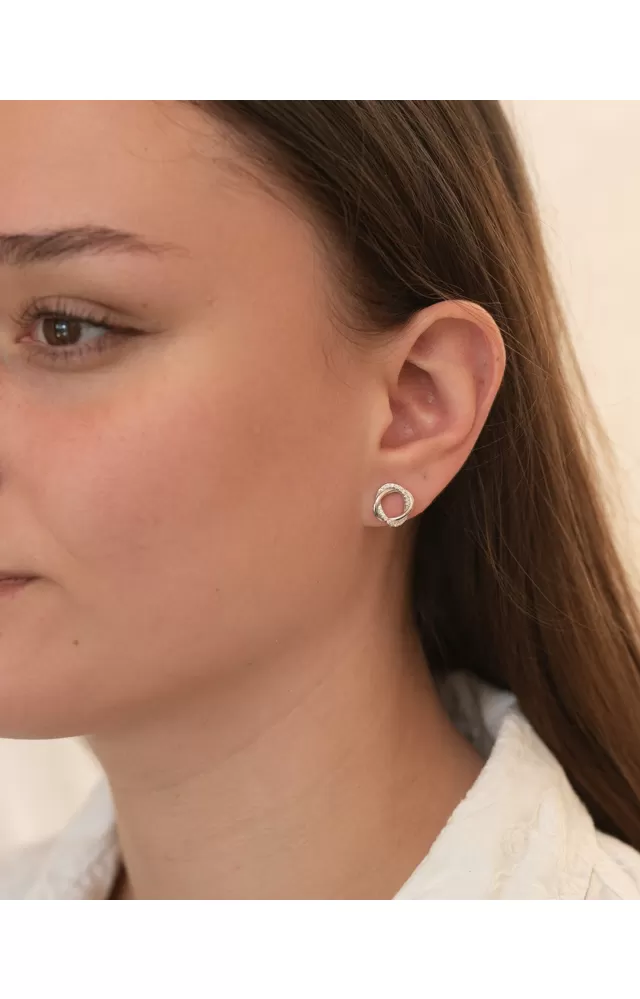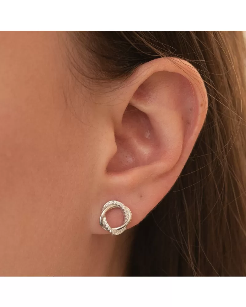 Nádherné stříbrné pecky, které zaujmou svým zpracováním. Ozdoba náušnic je zakroucená ze dvou linií a z toho jedna je ve vysokém lesku a druhá je osazena zirkony. Zirkony jsou briliantového brusu, který zajišťuje maximální brilanci vybroušených facet, dokonale odráží světlo a neuvěřitelně září z každého úhlu pohledu. Náušnice mají krásný zářivý vzhled, dodávají eleganci v každém směru.