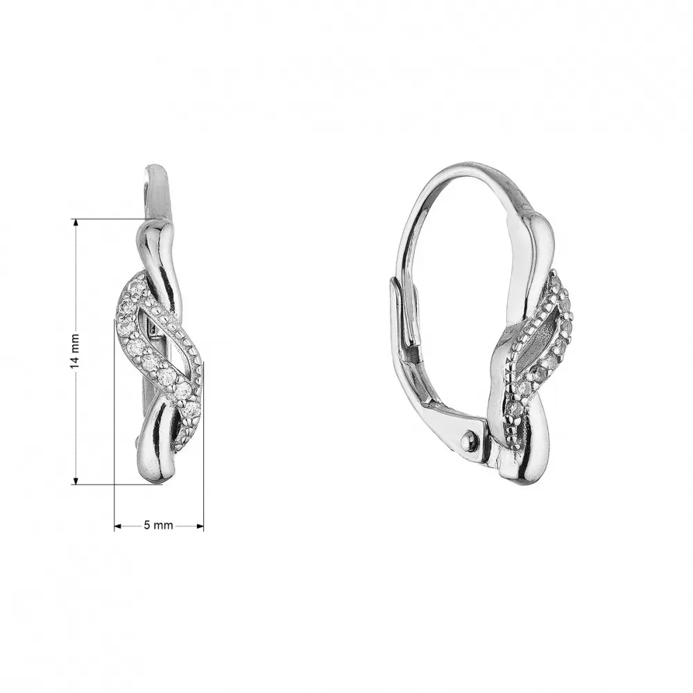 Stříbrné visací náušnice 11671.1 s ryzostí 925/1000 a rhodiovou úpravou zaujmou svým originálním designem inspirovaným ladným pohybem vln. Náušnice tvoří dvě navazující části – první jednoduchá vlna vede vodorovně, zatímco druhá, dynamičtější, se v polovině rozdvojuje do dvou samostatných linií, které se později znovu spojují. Každá vlnka je osázena precizně broušenými čirými kamínky v barvě crystal různých velikostí, což vytváří efektní hru světla a dodává šperku luxusní třpyt.