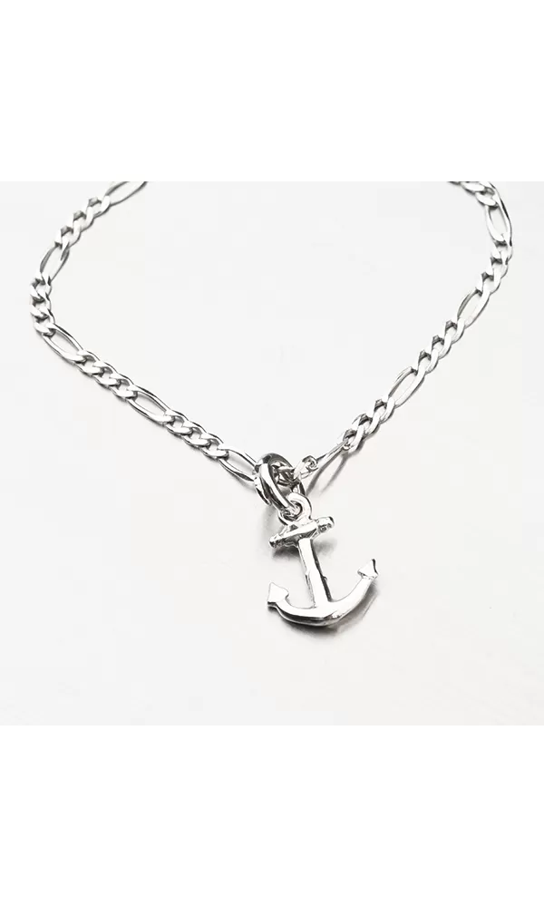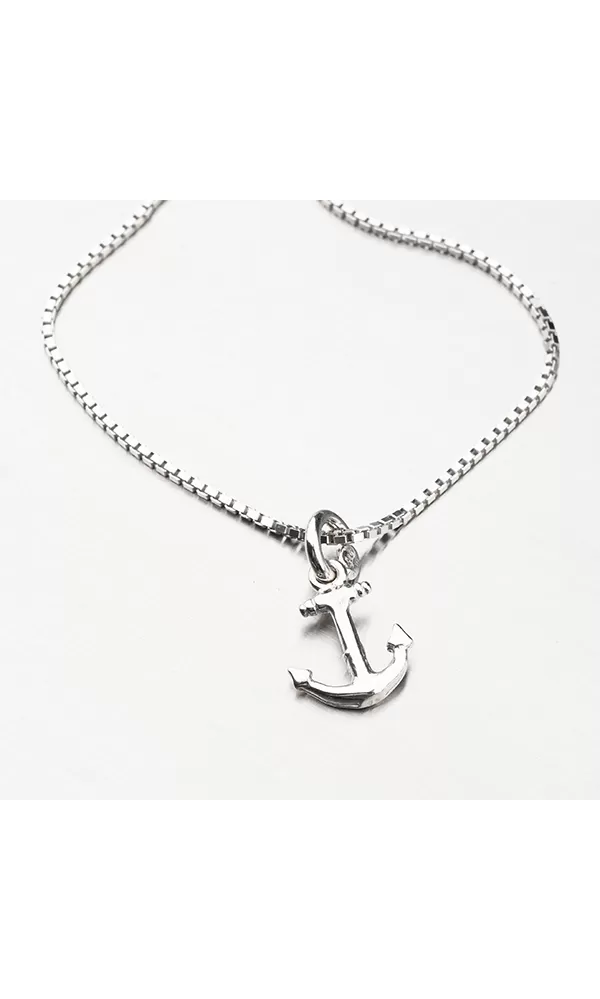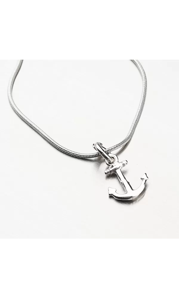 Stříbrný námořnický přívěsek ve tvaru kotvy. Ideální šperk pro milovníky vodáckého sportu.