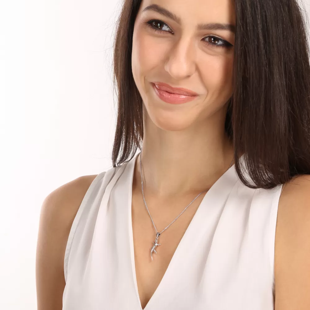 Stříbrný přívěsek 64037 ve tvaru ještěrky je vyroben ze stříbra o ryzosti 925/1000 včetně povrchové úpravy rhodiem. Rhodium ochrání šperk proti nechtěnému zčernání, zežloutnutí i poškrábání.