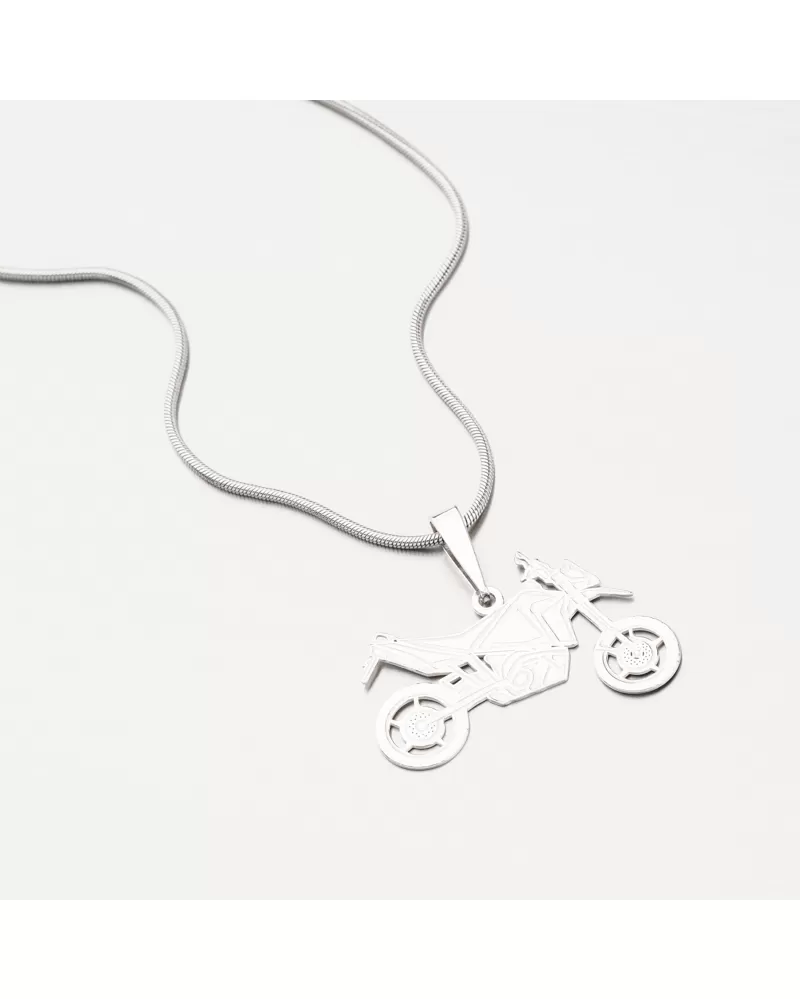 Pro fanoušky motorek a svobodné jízdy na dvou kolech přinášíme stříbrný přívěsek, který zaručeně zaujme. Je totiž ve tvaru sportovní motorky s detailním zpracováním, kde za pomocí rýh a sametového matu se dokonale dokreslí tvar motorky.